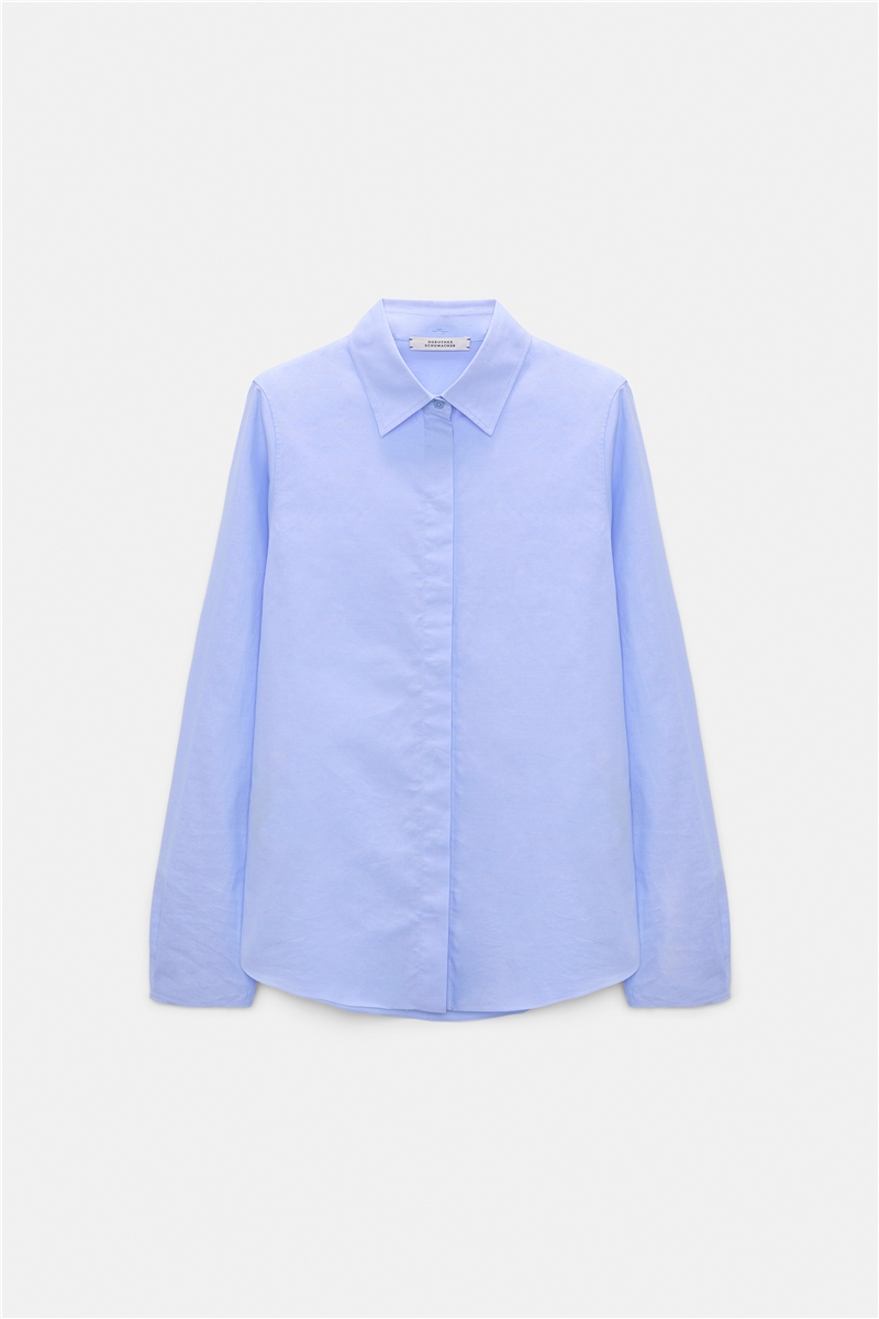 1111 Produktinformationen "Dorothee Schumacher - Bluse mit abnehmbarem, gestreiftem Polokragen aus Baumwoll-Oxford oxford blue"