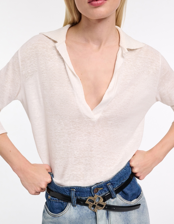 Langarmshirt aus Hanf von DOROTHEE SCHUMACHER mit geripptem Strickkragen