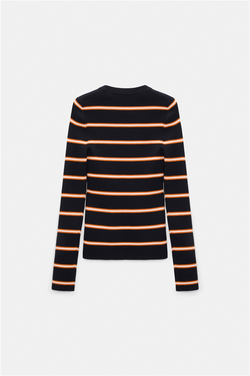Produktinformationen "Dorothee Schumacher - Rippenpullover mit Streifen schwarz/orange"