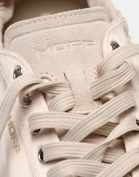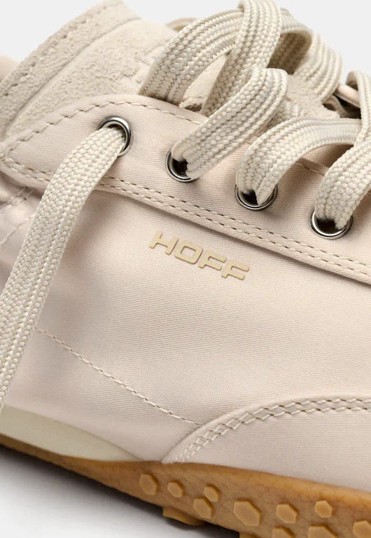 Die Ferse ist mit einem subtilen Logodetail versehen und verfügt über einen elastischen Raffungseinsatz, der dem Fuß perfekten Halt gibt und den Sneaker besonders bequem macht. Die profilierte Laufsohle mit der typischen HOFF-Struktur bietet ein angenehm leichtes Laufgefühl und setzt einen sportlichen Akzent.