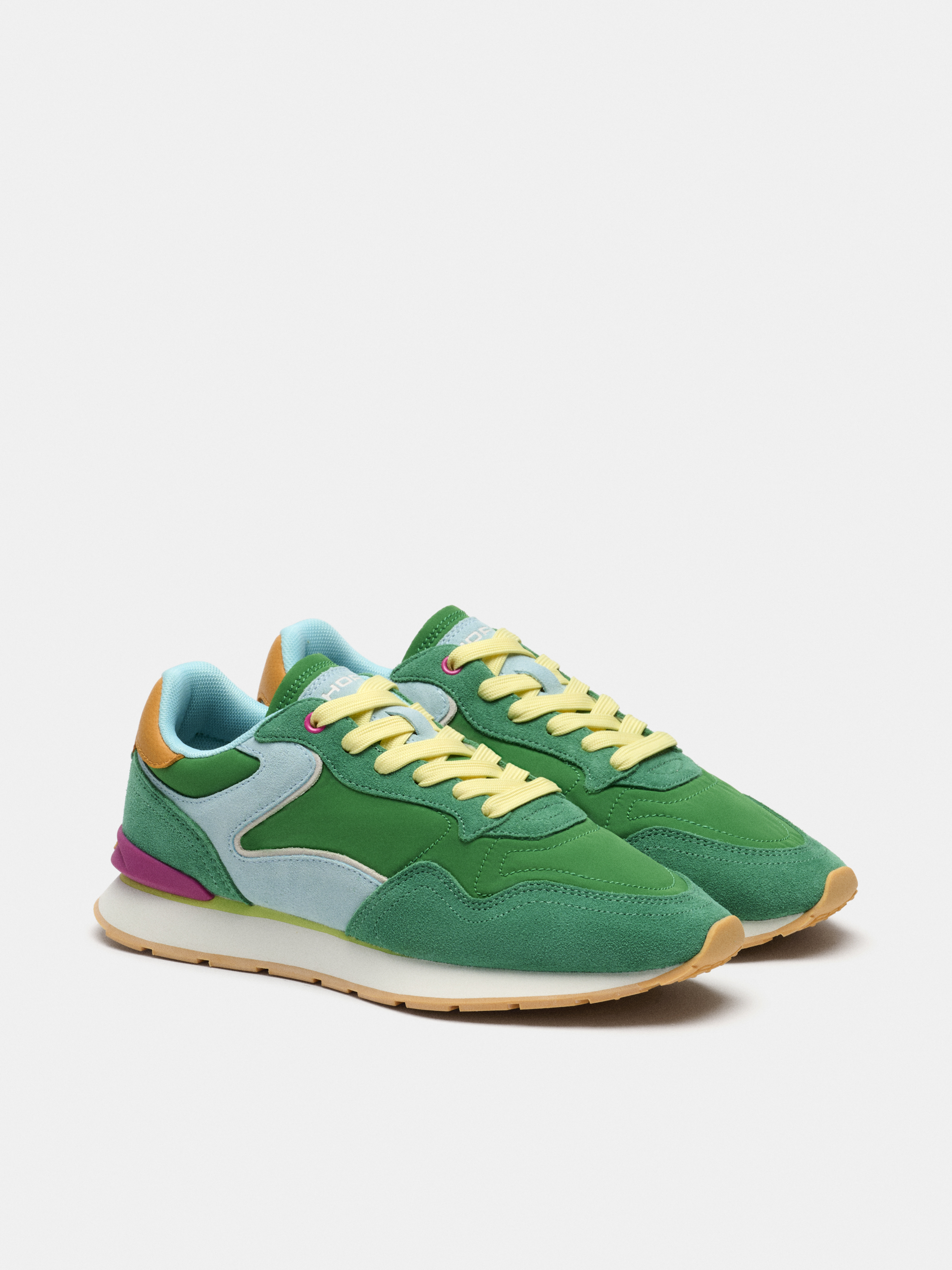 Der Sneaker „City Dopamine“ von HOFF verbindet sportliche Dynamik mit einer klaren, modernen Linienführung. Nylon mit dezentem Satin-Finish trifft auf weiches Veloursleder und erzeugt eine lebendige Oberfläche mit feiner Struktur. Die Silhouette bleibt bewusst leicht und flexibel: ohne starre Verstärkungen oder feste Zehenkappe passt sich der Schuh weich dem Fuß an und vermittelt ein natürliches Tragegefühl. Die farbstarke Kombination verleiht dem Modell eine frische, urbane Ausstrahlung, während die Memory-Foam-Innensohle zusätzlichen Komfort im Alltag bietet.