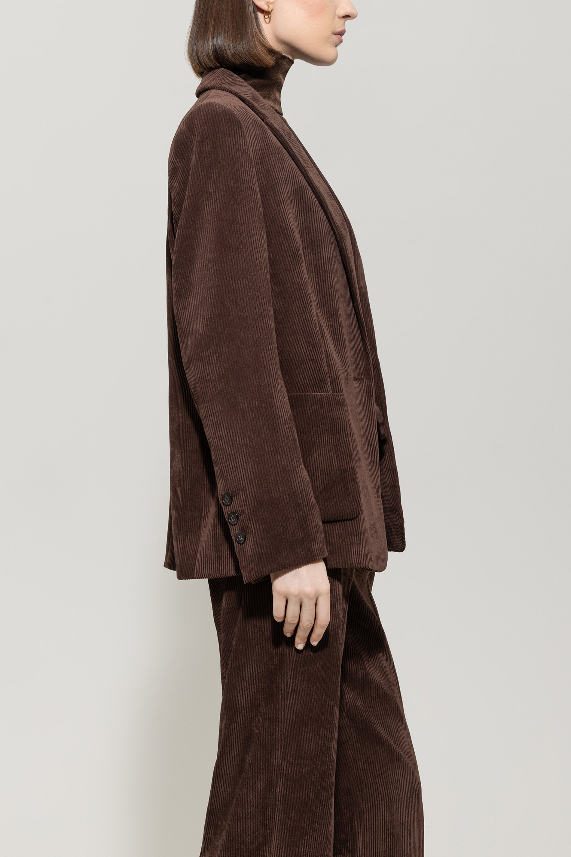 Gefütterter Ein-Knopf-Blazer von LUISA CERANO aus Cord mit zwei aufgesetzten Taschen, die Ärmel schließen mit einer Drei-Knopf-Manschette ab.