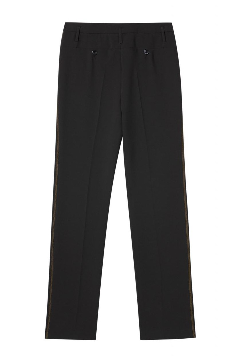 Hose von LUISA CERANO in dezenter Crêpe-Struktur mit höherem Bund, weiten Beinen und Bundfalten. Zwei extravagante Fronttaschen sowie aufwendige Nahtdetails und ein kontrastfarbenes Band sorgen für markante Effekte.