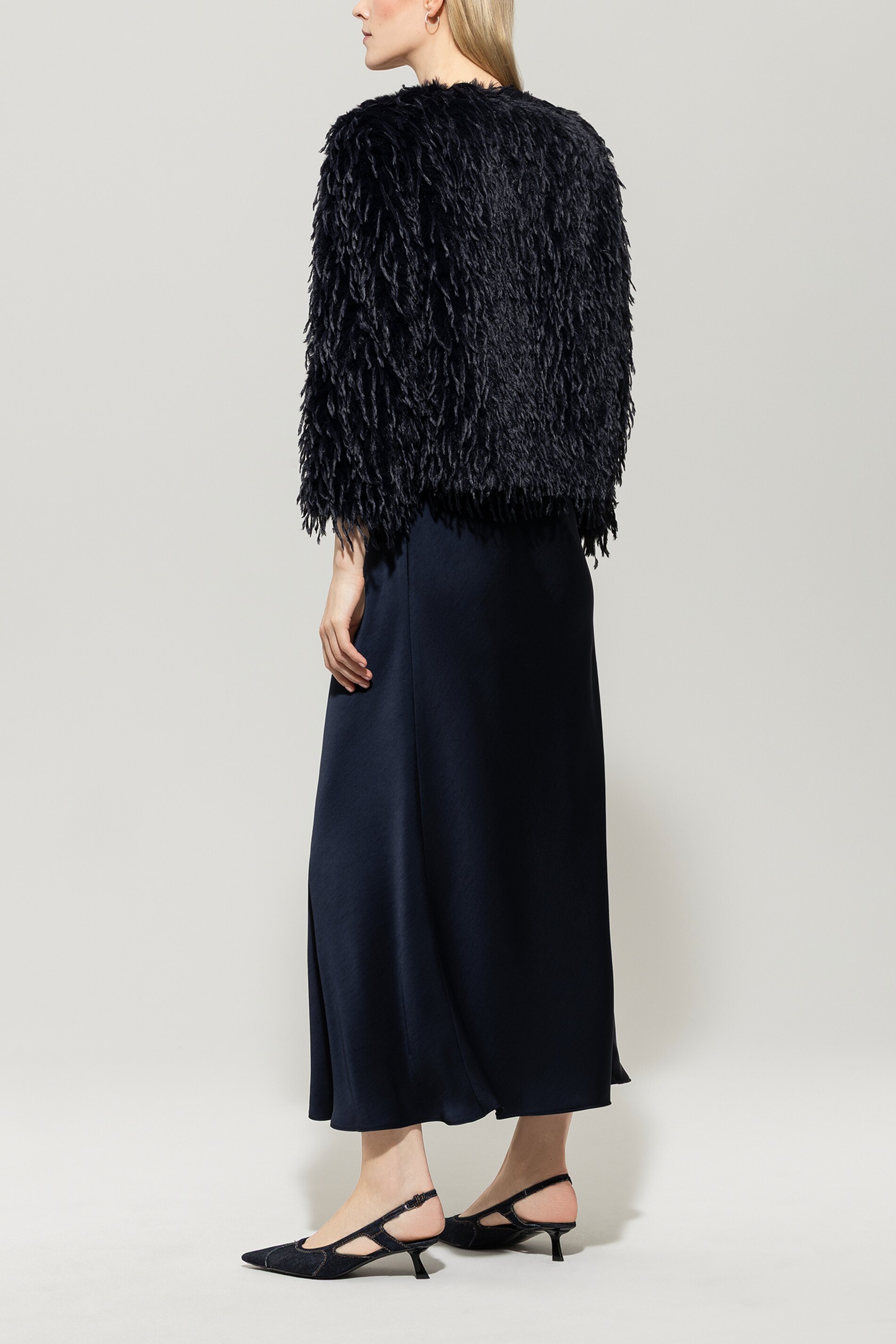 Kurze, gefütterte Jacke aus Webpelz in extravaganter Feder-Optik von LUISA CERANO.