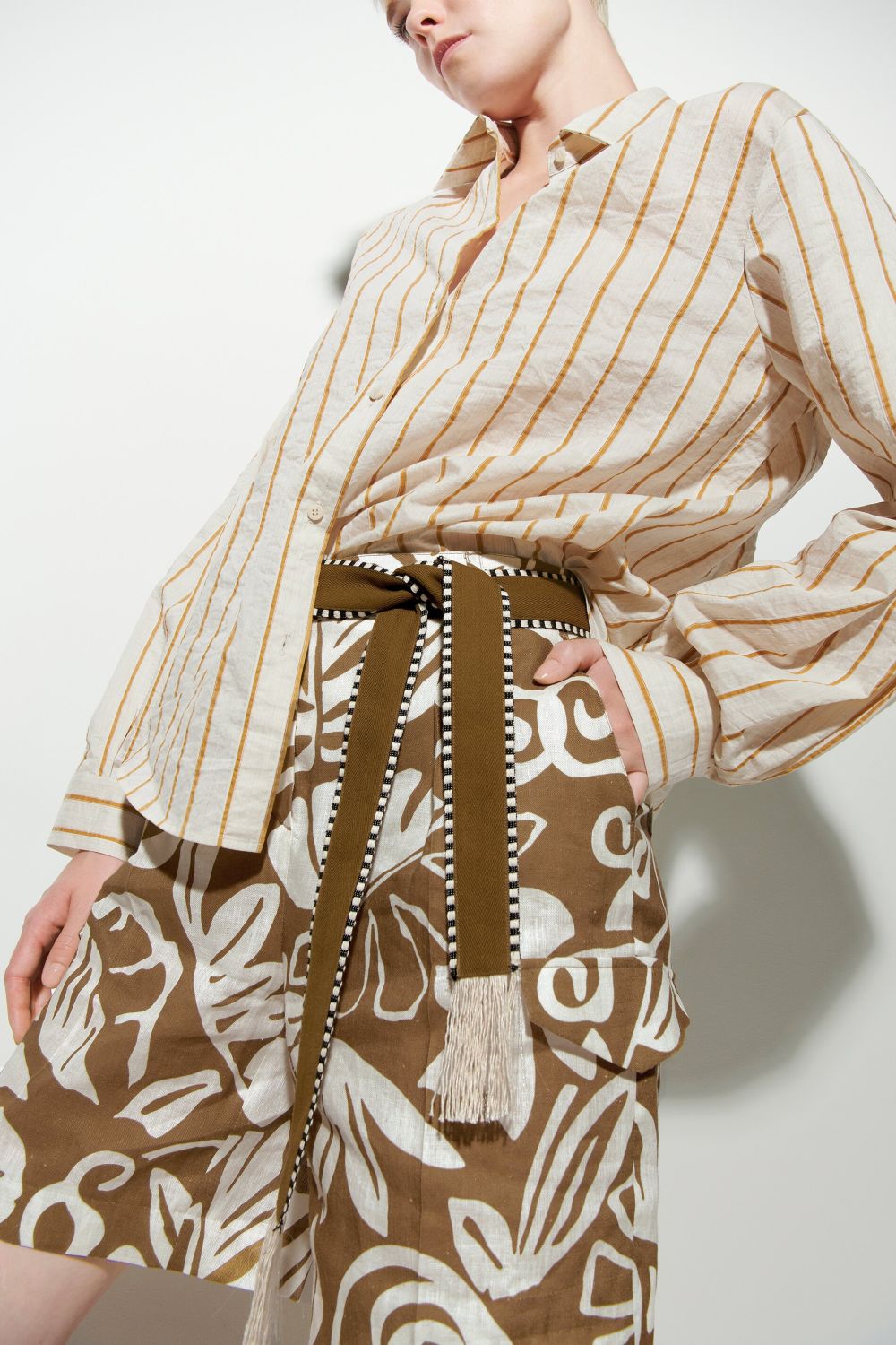 Bindegürtel aus reiner Baumwolle mit zweifarbigem Ethno Muster von LUISA CERANO.