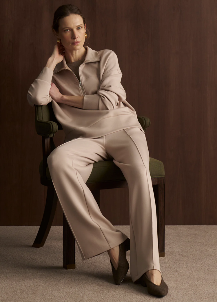 Die The Wide Leg Pant von Varley in Mushroom lässt sich besonders stimmig mit passenden DoubleSoft®-Oberteilen im gleichen Farbton kombinieren. Ton-in-Ton entsteht ein ruhiger, harmonischer Look mit moderner Ausstrahlung. Alternativ sorgen feine Strickteile oder cleane Tops in Creme oder Sand für eine leichte, elegante Variation. Abgerundet wird der Look durch minimalistische Schuhe.
