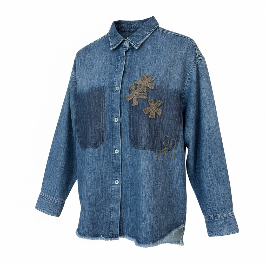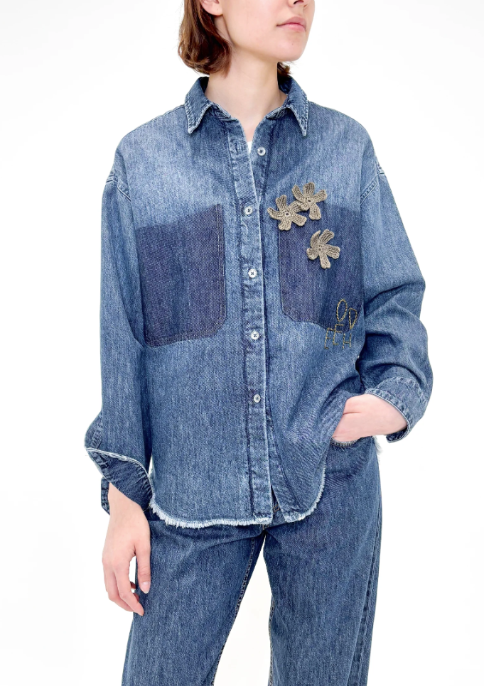 ODEEH - Jeansbluse mit Applikationen und Vintage-Charakter
