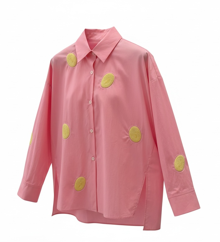 Diese außergewöhnliche Bluse von ODEEH ist ein echtes Gute-Laune-Piece und bringt mit ihrer frischen Farbe Candy und den aufgesetzten gehäkelten Punkten sofort Leichtigkeit in jedes Outfit. Die großzügige Oversize-Silhouette sorgt für eine entspannte, moderne Ausstrahlung und bietet zugleich höchsten Tragekomfort.