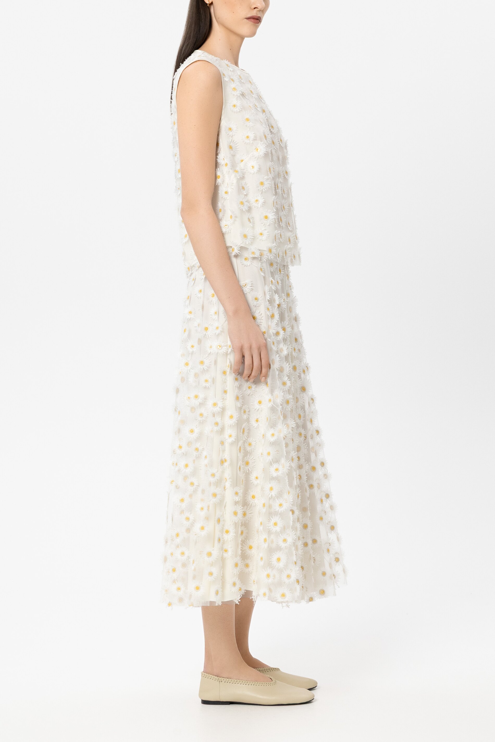 • Schnitt/Passform: Gerade geschnitten, Rundhalsausschnitt, ärmellos, Knopfverschluss auf der Rückseite, aufwendig applizierte 3D-Blüten auf gefüttertem Tüll
