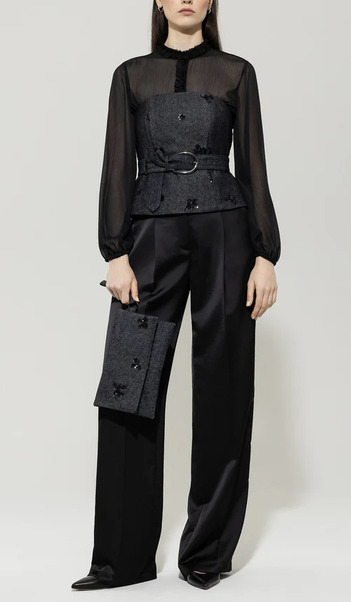 Weite Hose von LUISA CERANO aus schwerer, fließender Techo-Seide mit edlem Glanz. Die Hose zeigt sich in elegantem Schnitt mit Bundfalten.