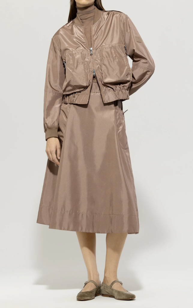Kurzer Blouson von LUISA CERANO aus einem glänzendem Outdoor-Changeant-Taft mit einer aufwendigen Taschen und seitlichem Reißverschluss.