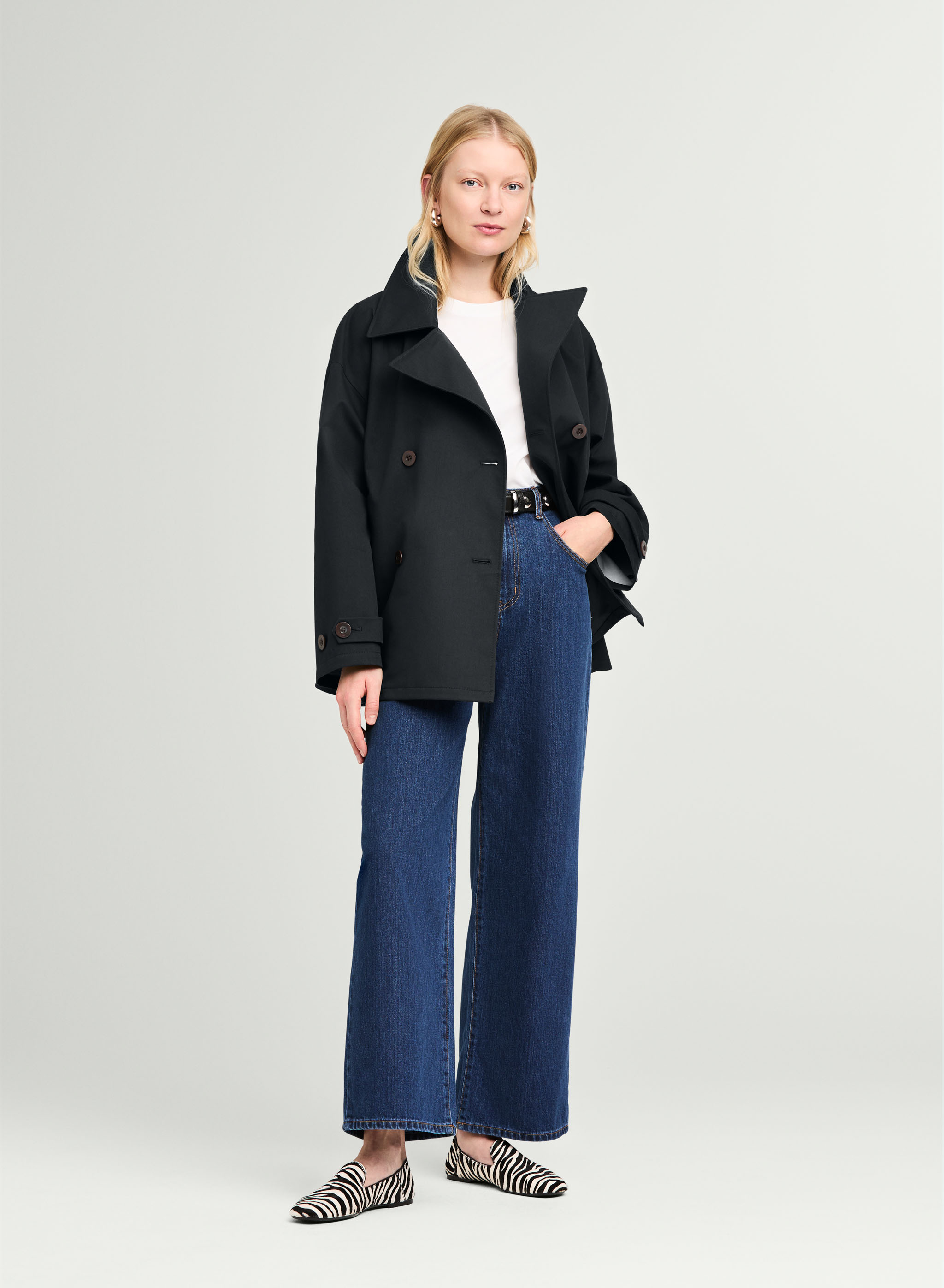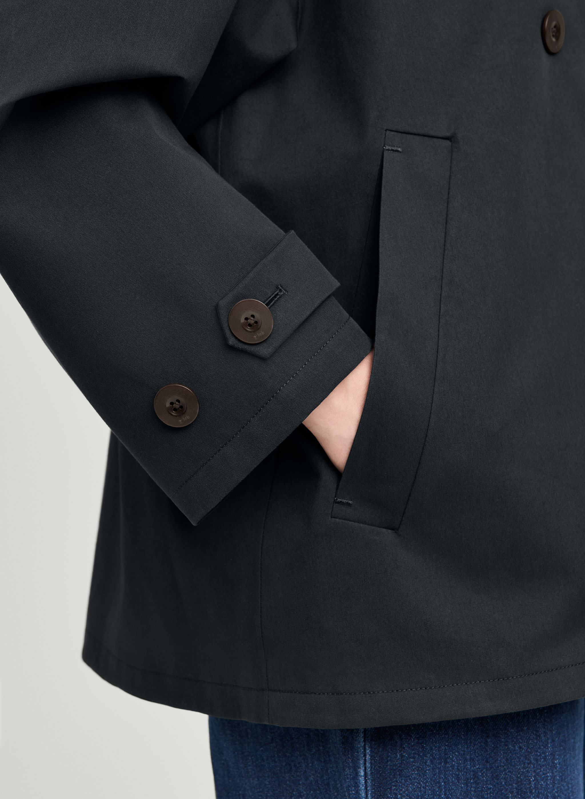 - Schnitt/Passform: Kurze Trenchjacke, zweireihig mit Knöpfen, Ärmelabschluss mit Knopf, 2 Taschen mit Magnetverschluss, voll verschweißte Nähte, schmutz- und wasserabweisend, Zweiwege-Reißverschluss, maschinenwaschbar