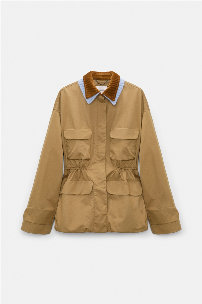 - Schnitt/Passform: Leicht oversized Silhouette, Tunnelzug in der Taille, ungefüttert, mit aufgesetzten Taschen, abnehmbarem Doppelkragen, Riegeln an den Ärmeln und Ventilationsöffnungen