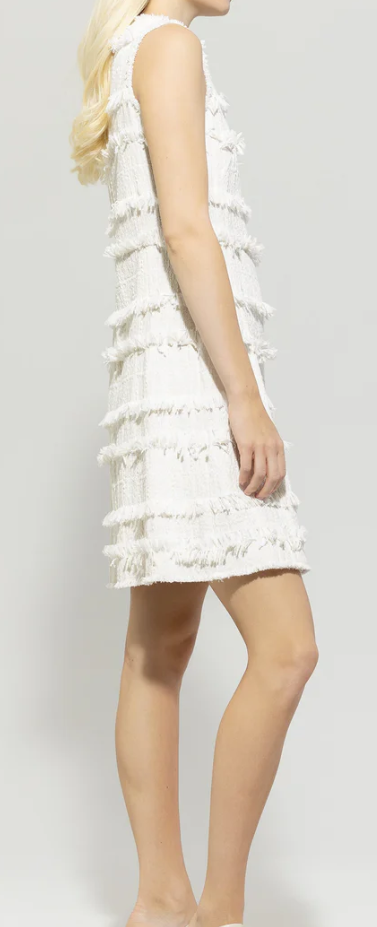 Kurzes Kleid aus modernem Fancy Tweed von LUISA CERANO mit Fransendetails.