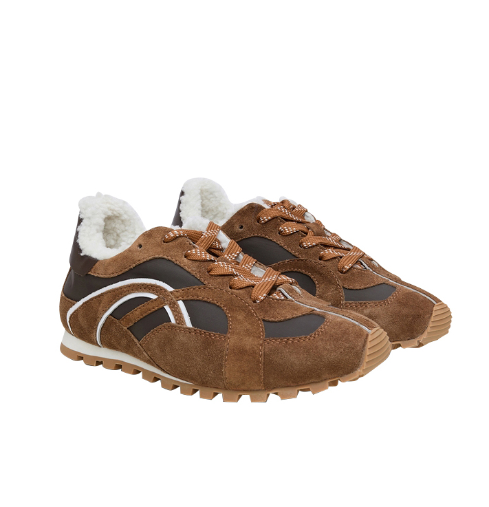 Die zweifarbige Gummisohle unterstreicht den sportlichen Charakter und setzt einen modernen Akzent. Durch seine schmale Form wirkt der Sneaker besonders feminin und macht einen wunderbar kleinen Fuß. Die harmonische Kombination aus Dunkelbraun, Mittelbraun und weißen Details macht ihn vielseitig kombinierbar: zur weiten Jeans, zur schmalen Denim, zu sportiven Looks oder kontrastreich zu hellen, weißen Tönen. Ein luxuriöser, warmer Sneaker, der Stil und Komfort perfekt vereint.