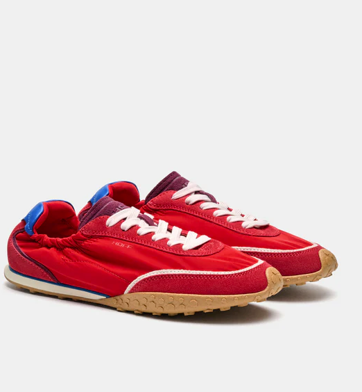 Der Sneaker funktioniert besonders gut zu schmalen Denim-Silhouetten oder zu entspannten Stoffhosen mit leicht verkürztem Bein. Auch zu minimalistischen Kleidern oder klar geschnittenen Röcken entsteht ein moderner Kontrast zwischen sportiver Leichtigkeit und urbaner Eleganz.