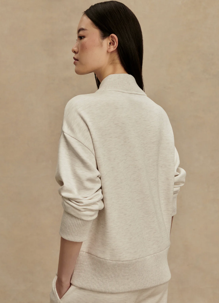 Der Sally Sweater mit halbem Reißverschluss von VARLEY ist der perfekte Alltagsbegleiter. Gefertigt aus einem weichen Double Soft Material bietet er höchsten Tragekomfort und überzeugt mit stilvollen Details. Die groben Rib-Strick-Elemente am V-Ausschnitt, am Saum und an den Ärmelbündchen sorgen für eine moderne Optik. Mit seiner lässig überschnittenen Schulterpartie und dem soften Griff wird er schnell zum Lieblingsstück.