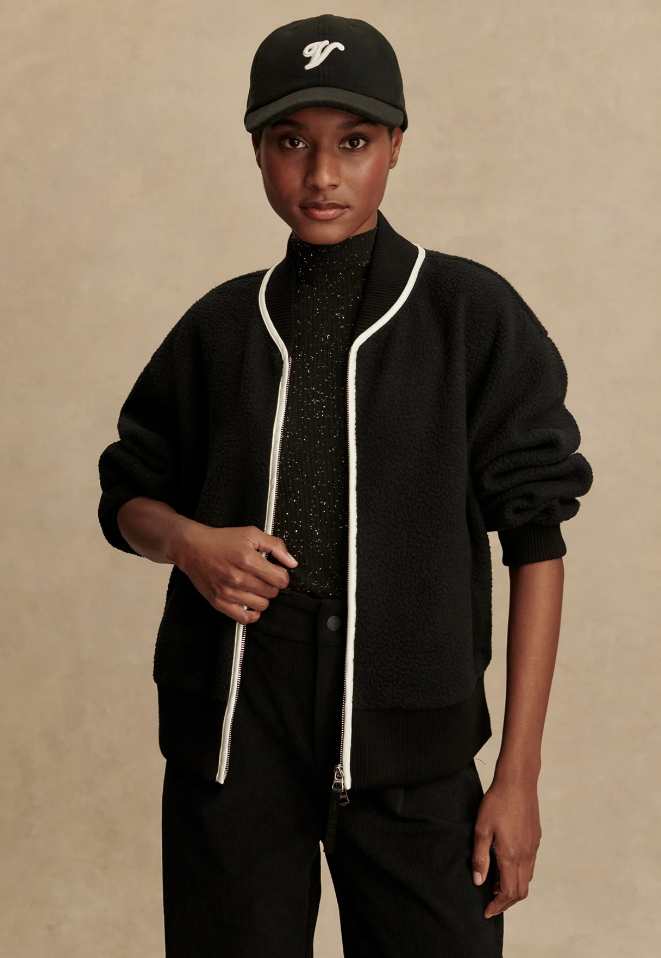Hansley Fleecejacke von VARLEY in klassische, lässige Bomberjacke ist ein stillvolles und vielsesitiges Basic für den Lagenlook. Elegante Kontraststreifen am Kragen und an der Vorderseite verleihen dem Design Struktur.