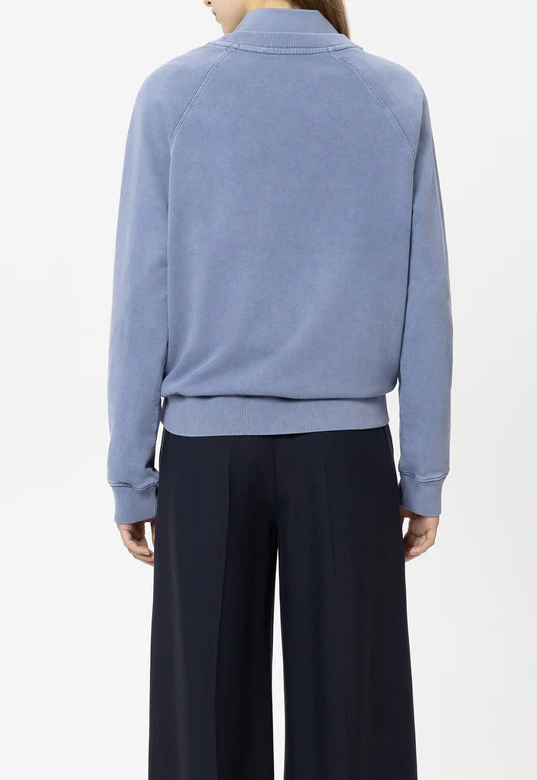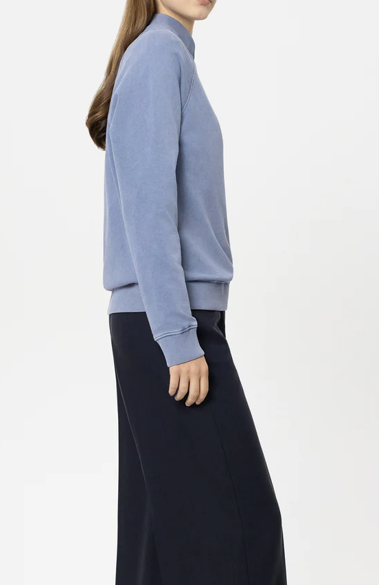 Die sportive Silhouette wird durch Raglanärmel, markante Flatlock-Nähte und breite Ribbündchen an Saum und Ärmeln unterstrichen. Ein idealer Everyday-Style, der Komfort, Design und Eleganz verbindet. Die Farbe Casual Blue lässt sich vielseitig kombinieren – ob zur Jeans, weiten Stoffhose oder Rock.