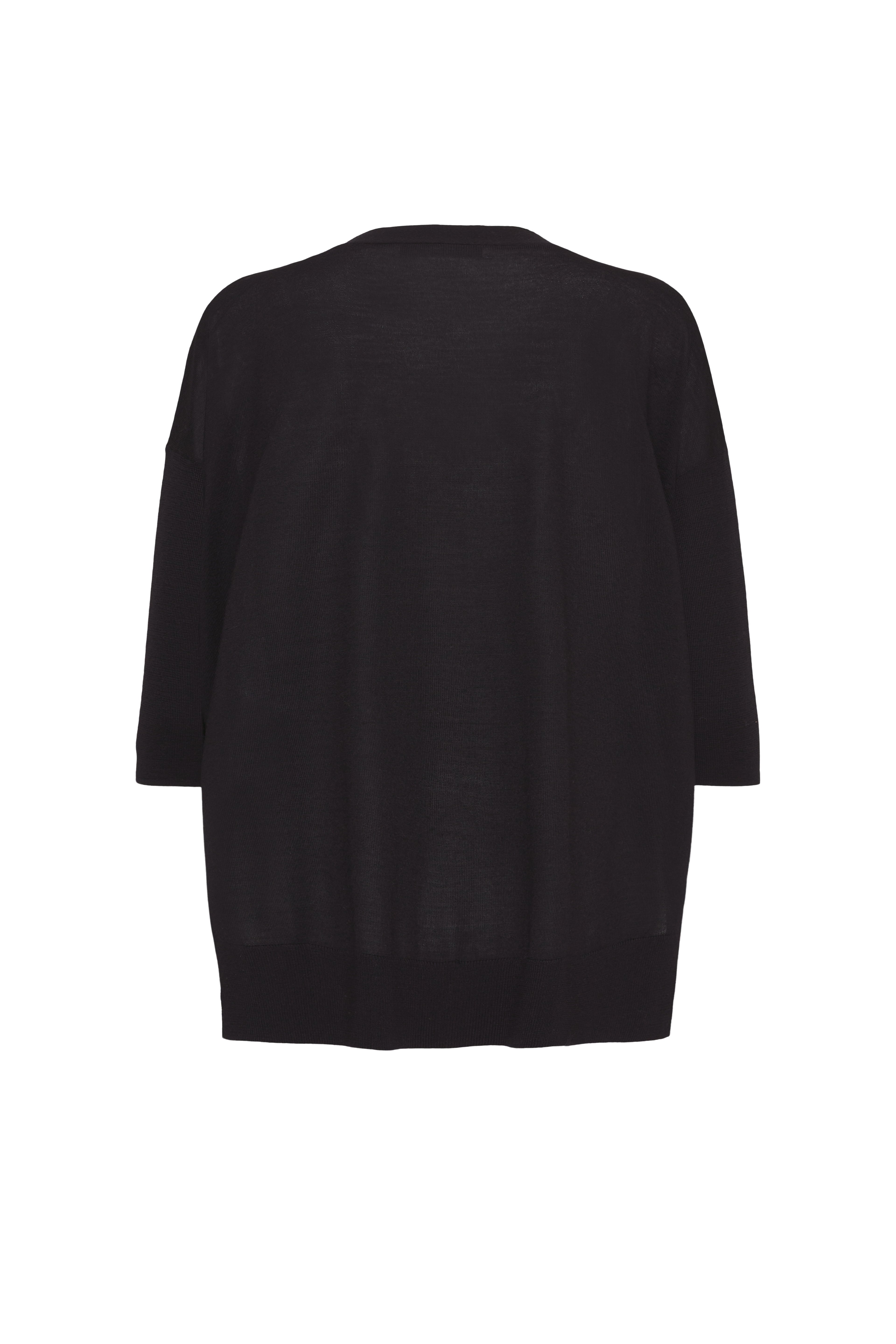 Der Cardigan von DOROTHEE SCHUMACHER ist aus einem besonders feinem Merino- Seidenmix gefertigt und ist ein cooles Statement.