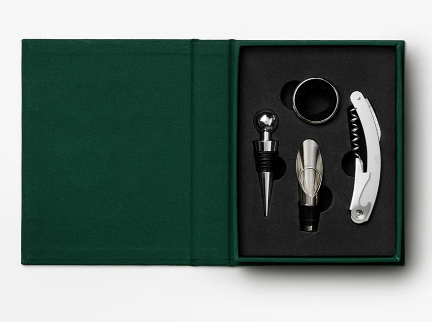 Endecken Sie das unverzichtbare Set für den perfekten Weingenuss von PRINTWORKS, ein raffinierter Werkzeugkasten in einer elegante buchänliche Box. Alle Werkzeuge sind aus rostfreiem Stahl und spülmaschinenfest.
