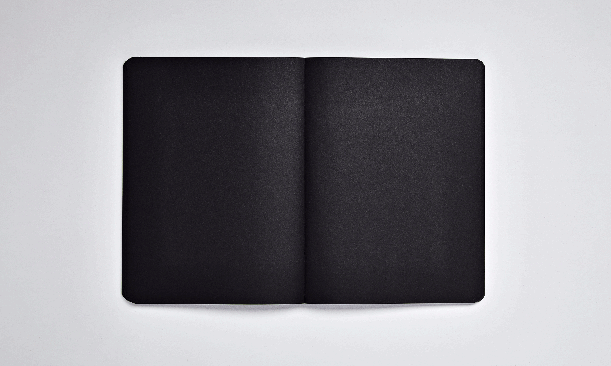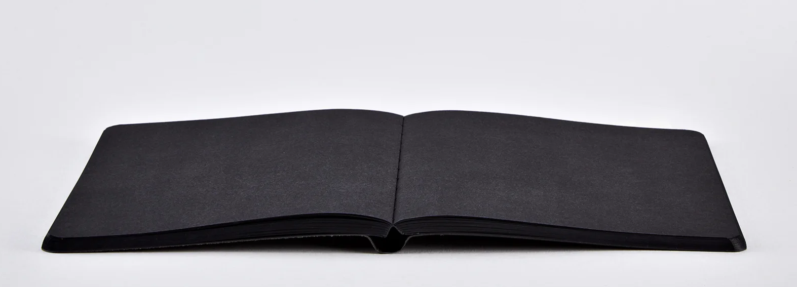 - Flexcover-Notizbuch mit weichem Einband aus recyceltem Leder, 176 Seiten schwarzes Papier, durchgefärbte Seiten, ohne Seitenzahlen, Fadenheftung mit perfektem Aufschlagverhalten, Siebdruck-Finish, elastisches Anti-Handbag-Textilband mit Stifthalter und Smartphone-Halter, inkl. weißem Gelstift