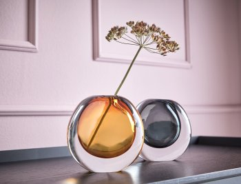 Die Vase Cariani von LAMBERT ist eine edles Designobjek aus klarem und durchgefärbtem Glas in sogenannter Überfangtechnik mudgeblasen. Die Vase setzt einzelne Blüten und Blättere besonders in Szene.