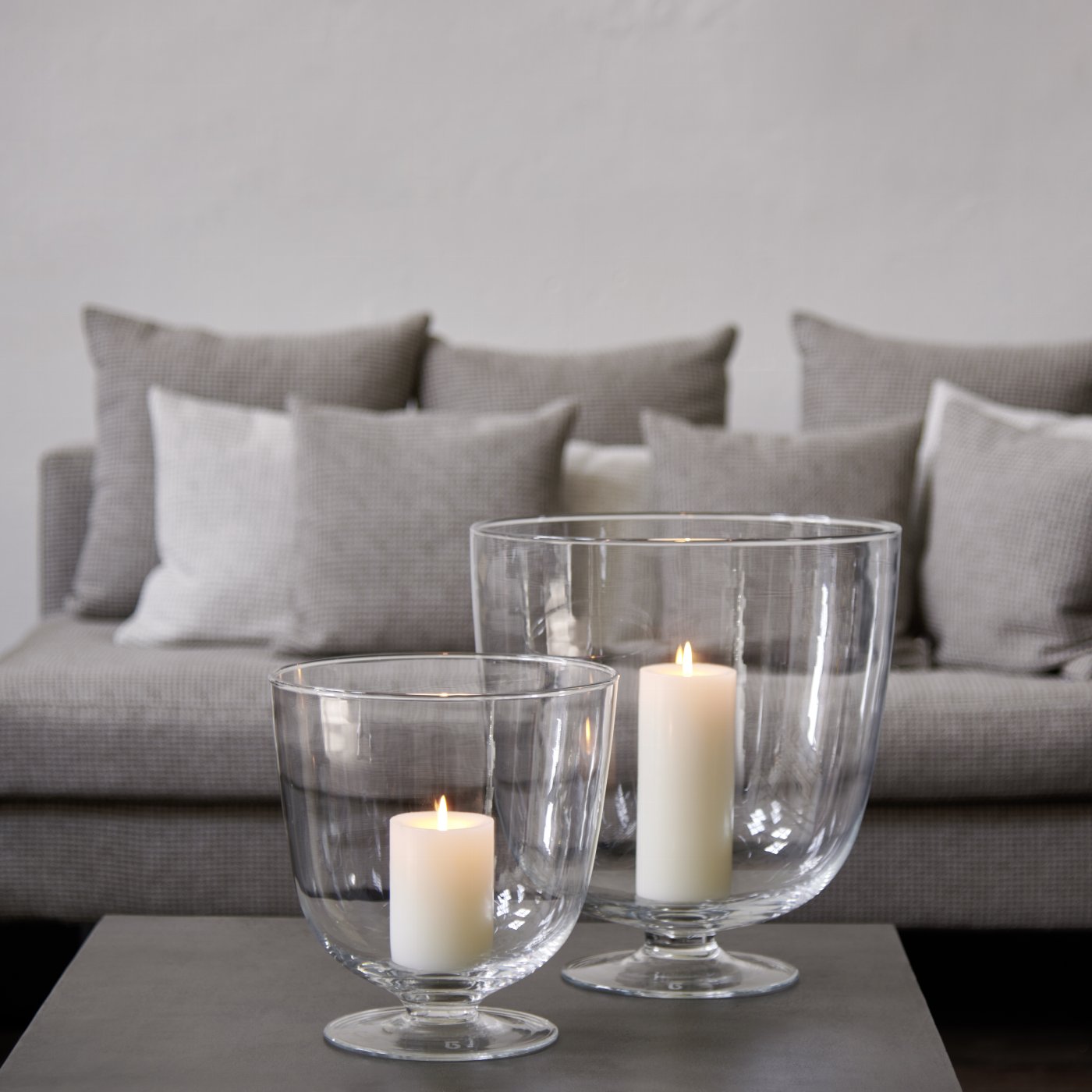 Das Windlicht von LAMBERT setzt schon durch seine Größe Akzente und kann aufgrund dessen, sowohl als Bodenwindlicht genutz werden. Kleine Lufteinschlüsse und Unregelmäßigkeiten im Glas dokumentieren einen handwerklichen Herstellungsprozess.