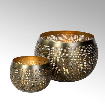 Das dekorative Windlicht Abaye von Lambert zaubert eine besonders schöne Atmosphäre in jeden Raum. Die feine grafische Struktur des Korpus lässt das Licht der Kerze sanft hindurchscheinen und erzeugt faszinierende Licht- und Schattenspiele auf Boden und Wänden. Gefertigt aus feinem Eisenblech, verbindet das Windlicht kunstvolles Design mit handwerklicher Präzision. Die patinierte Oberfläche in Antiknickel-Gold sorgt für einen edlen Look und macht jedes Stück zu einem kleinen Unikat.