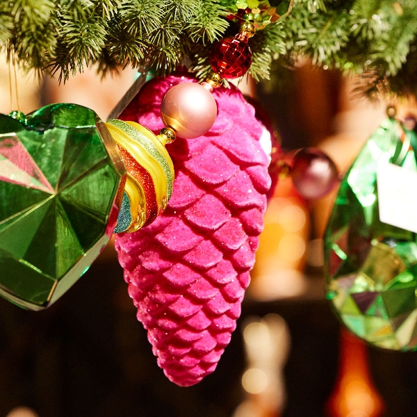 Ein glanzvoller Hingucker für die festliche Dekoration: Der Zapfen in kräftigem Magenta ist mit samtiger Beflockung und feinem Glitter veredelt. Er bringt Farbe, Glamour und einen modernen Twist in die Weihnachtsdekoration. Perfekt zum Aufhängen an Zweigen, Kränzen oder als ausgefallenes Detail im Christbaum.